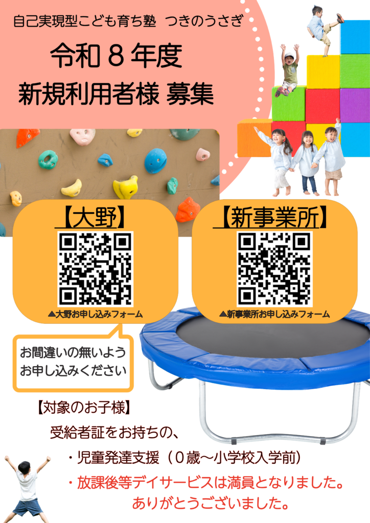 R8年度つきのうさぎ児童発達支援ご利用者を追加募集致します!