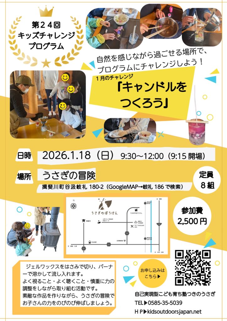 第24回キッズチャレンジプログラム『キャンドルを作ろう!』のお知らせ